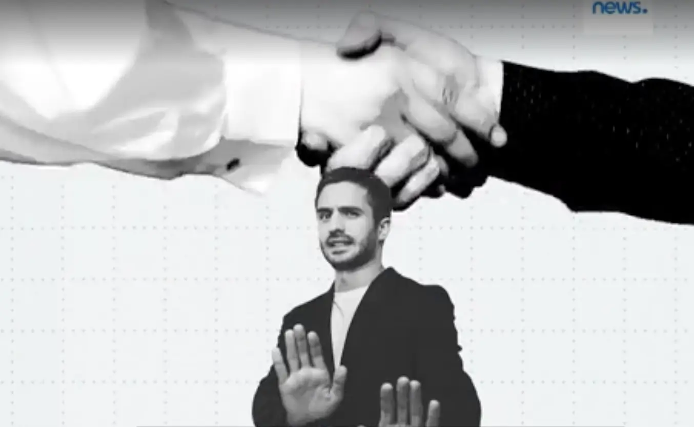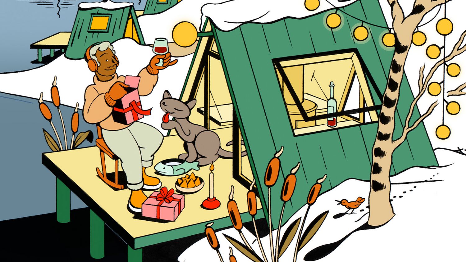press image of a man listening to music and an art design
